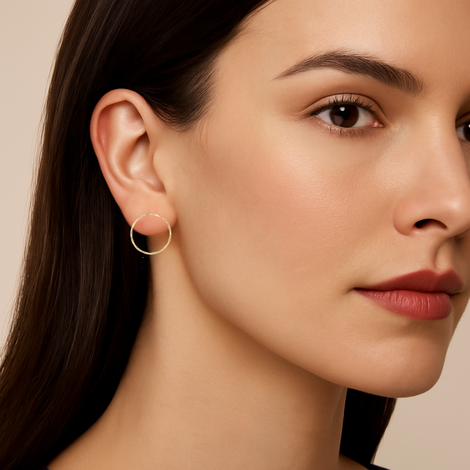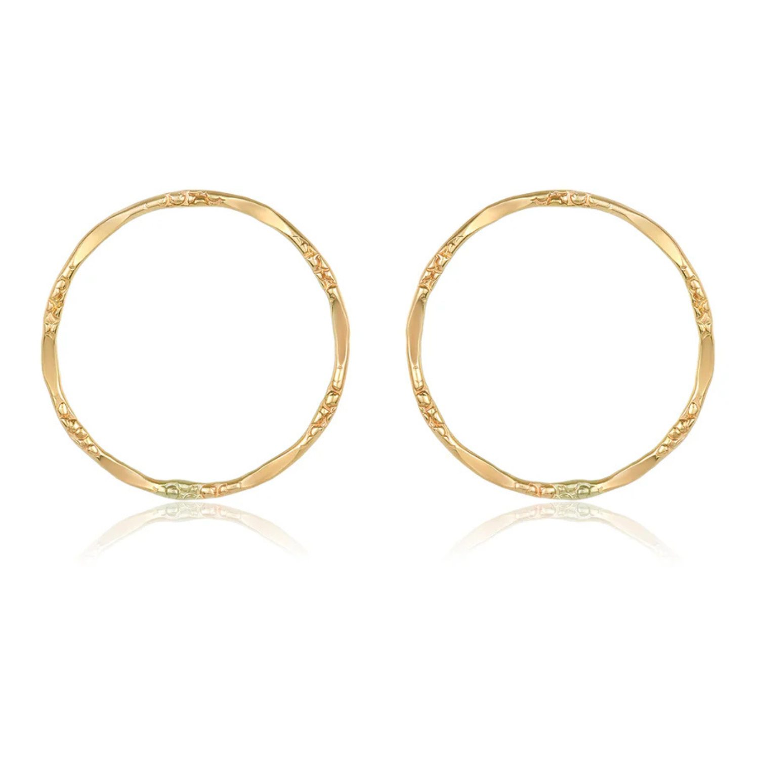 Lightly sculpted and quietly refined, The Avielle Hoops bring subtle radiance to every day. Crafted in gold-filled metal, each 20mm circle features a softly textured finish—organic, luminous, and designed to catch the light with effortless grace. Lightweight yet enduring, they offer sophistication without excess—an elevated essential for the modern wardrobe.