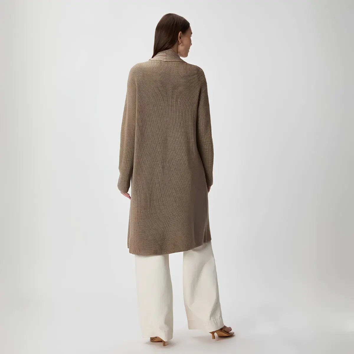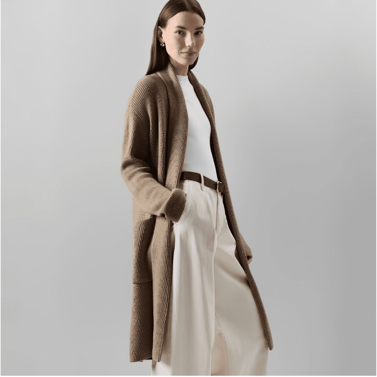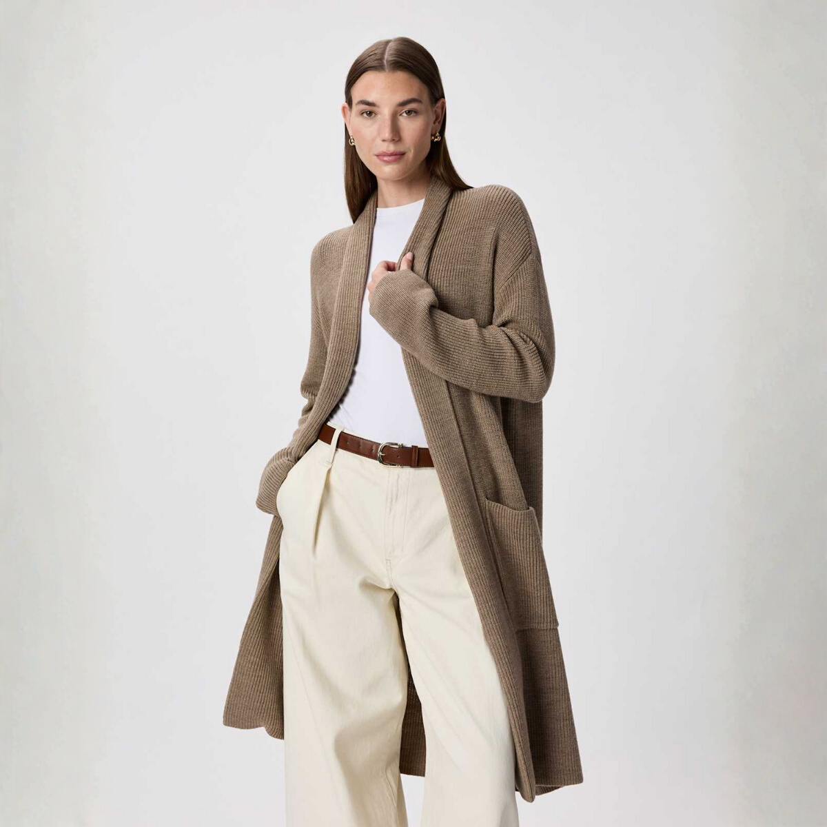 Long lines, effortless grace. The Marlowe is crafted from premium Australian Merino wool—sumptuously soft, feather-light, and endlessly breathable. Its open-front design drapes with fluid ease, creating a silhouette that moves as you do. The duster length lends understated drama, elongating the form with quiet confidence. A study in refined comfort, The Marlowe wraps you in warmth without weight—an essential layer for those who favor elegance in motion.