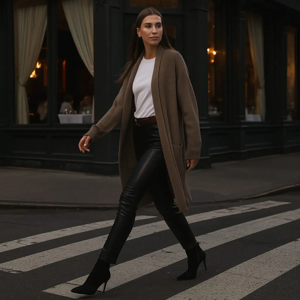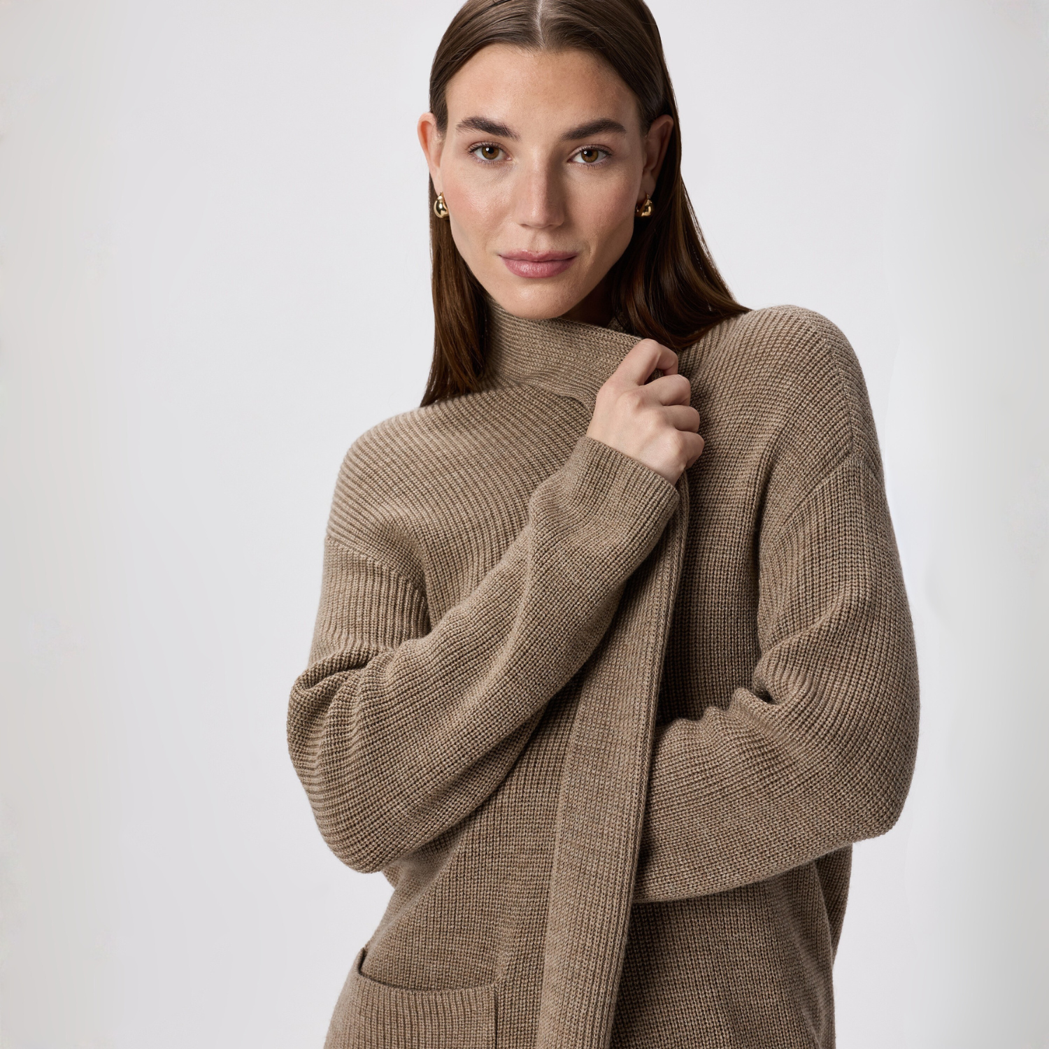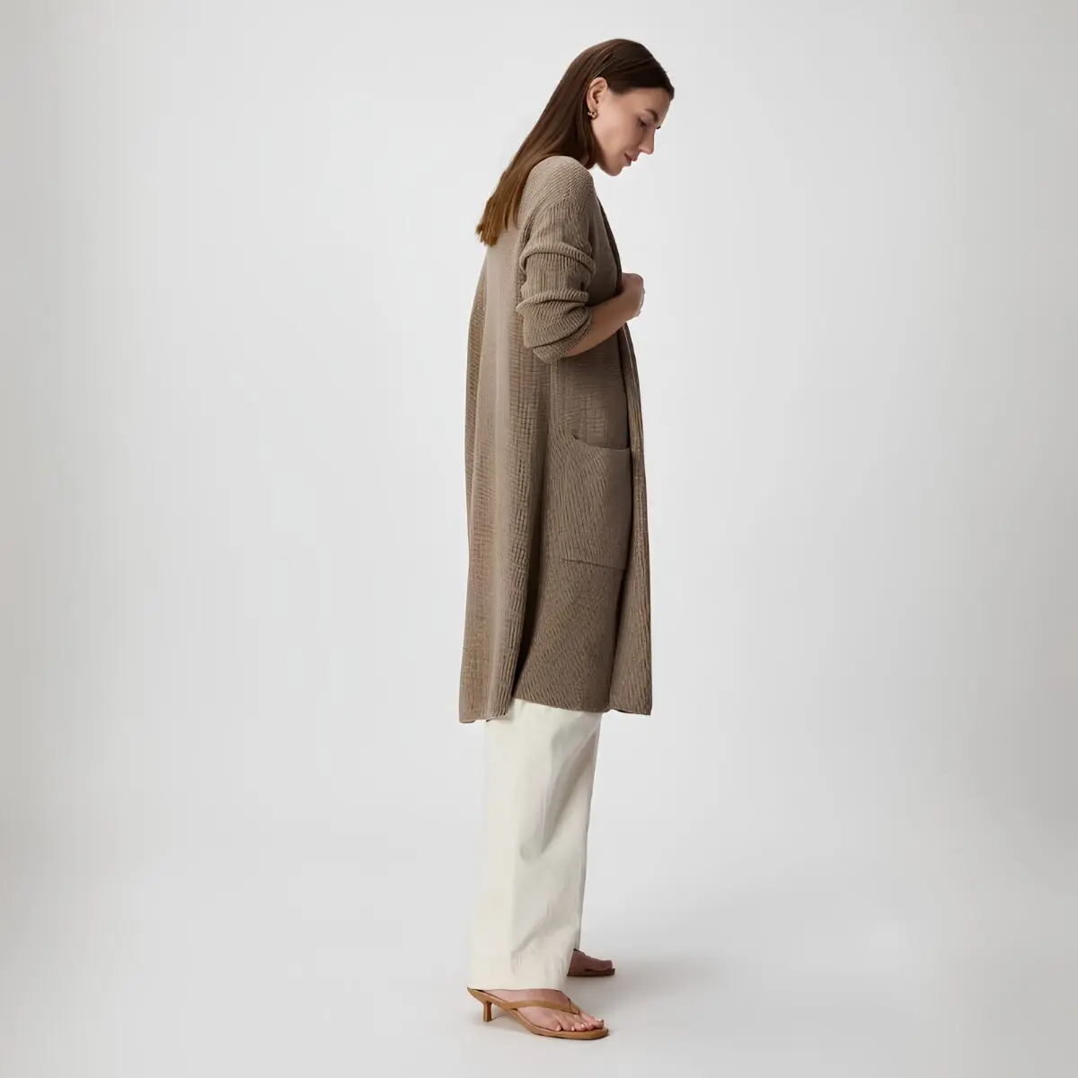 Long lines, effortless grace. The Marlowe is crafted from premium Australian Merino wool—sumptuously soft, feather-light, and endlessly breathable. Its open-front design drapes with fluid ease, creating a silhouette that moves as you do. The duster length lends understated drama, elongating the form with quiet confidence. A study in refined comfort, The Marlowe wraps you in warmth without weight—an essential layer for those who favor elegance in motion.